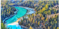 【禾木】有“上帝后花园”的美称,是图瓦人的集中生活居住地。禾木河在村旁流过,河水是浅蓝色,非常的清澈。村子周围还有草原、白桦林等,风光优美,是一处典型的原始自然生态风光。