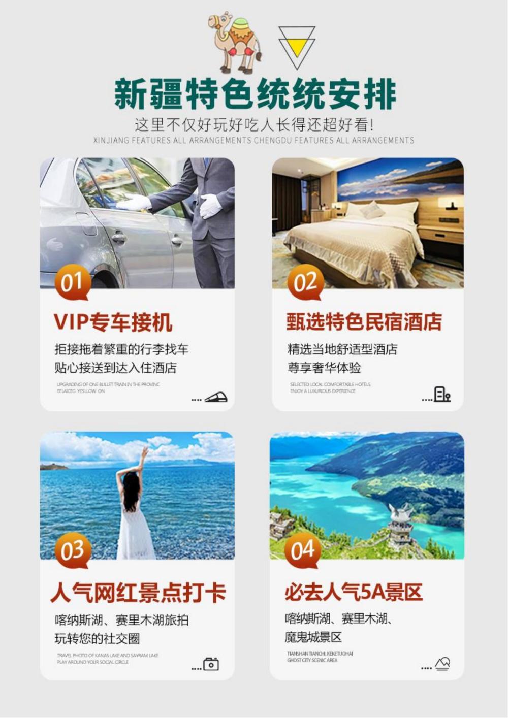3、新疆与内地时差 2 小时左右,新疆作息参考时间:早 9:30-10:00 上班,14:00 午饭,20:00 晚饭。全疆的治安是非常好的,请广大游客放心出游。